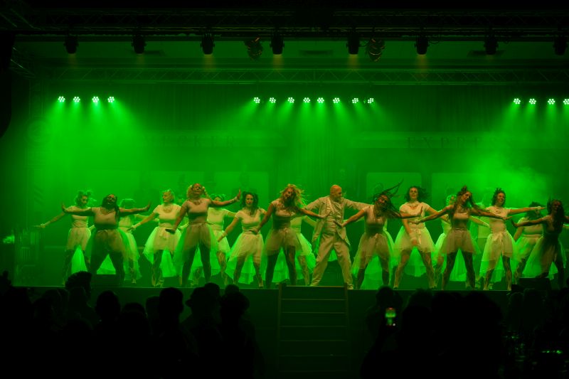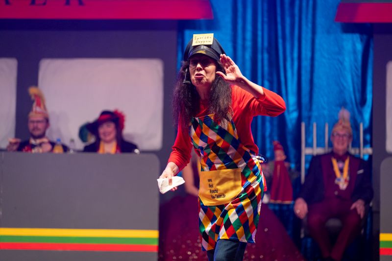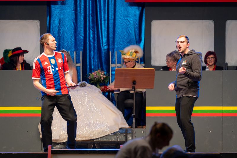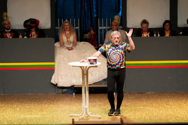 Für ausgelassene Stimmung sorgten anschließend Sophie Baskal und Elias Albrecht, die mit ihrer Animation den ganzen Saal in Bewegung brachten. Die Grüne Garde, trainiert von Sophie Bercek, Esther Krumholz und Elisa Böttinger, begeisterte das Publikum mit einem weiteren großartigen Tanz. In der Bütt überzeugte Gerd Dietrich als „Adipöser“ mit viel Humor.