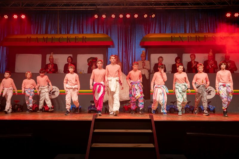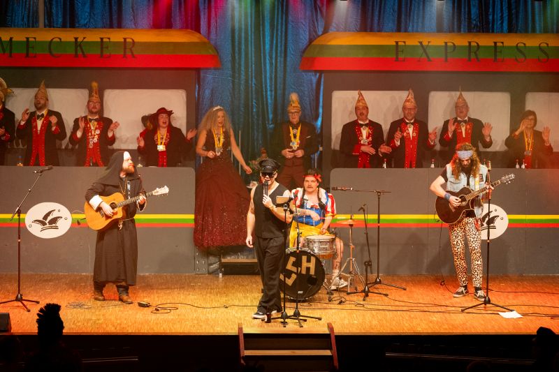 Unter dem Motto „Hamecker Express – Mit Volldampf durch die Narrenzeit“ lud die KG Hameckia e. V. zu ihren diesjährigen Prunksitzungen in die toll dekorierte Schlosshalle ein. Passend zum Motto verwandelte sich der Saal in einen närrischen Bahnhof voller guter Laune, Tanz und Musik.
