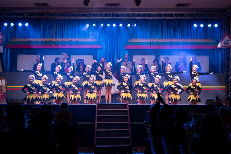 Die Rote Garde, trainiert von Jenni Klein und Mirenda Weizel, zeigte Tanz in Perfektion. Die „Zwei Nachbarsleut“ Bernd Malysiak und Herrmann Augspurger lieferten sich wie gewohnt einen schlagfertigen Schlagabtausch über das ein oder andere Geschehen in der Stadt. Das Männerballett stieg mit seinem Auftritt in den Schlafwagon des Hamecker Express ein und begeisterte mit einem tollen Tanz, trainiert von Vadim Baskal, Sophie Baskal und Elias Albrecht. Für viele Lacher sorgten auch die Schuggerbabes Petra Albrecht und Marion Hoffmann, die mit viel (un)nötigem Gepäck auf große Reise gingen.